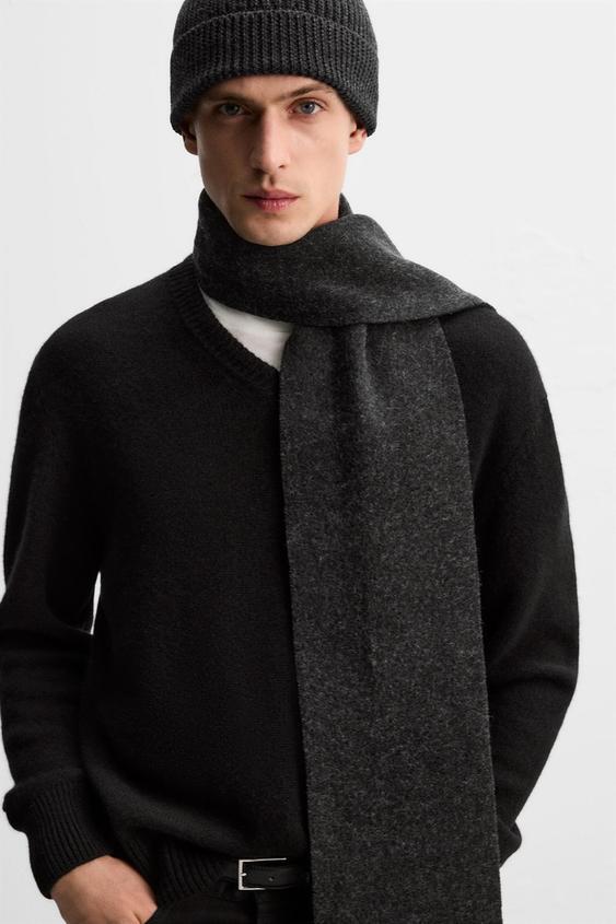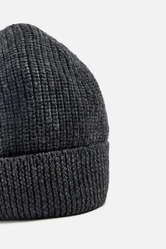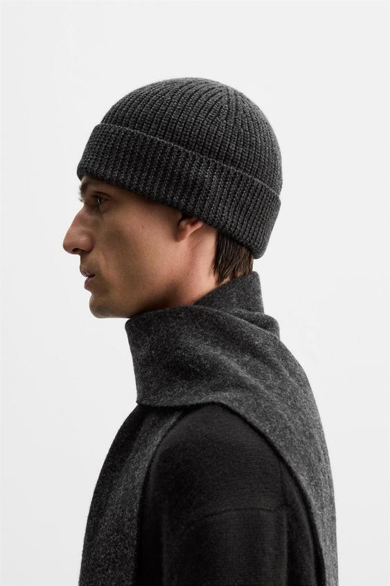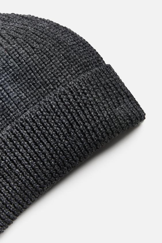 ZARA ШЕРСТЯНАЯ ШАПКА БИНИ, СЕРЫЙ С МЕЛАНЖЕВЫМ ЭФФЕКТОМ