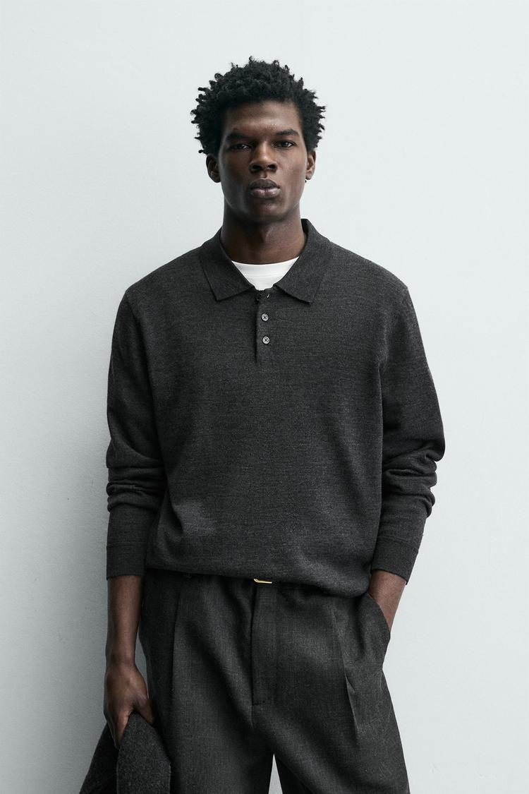 ZARA ШЕРСТЯНОЕ ПОЛО, АНТРАЦИТОВО-СЕРЫЙ