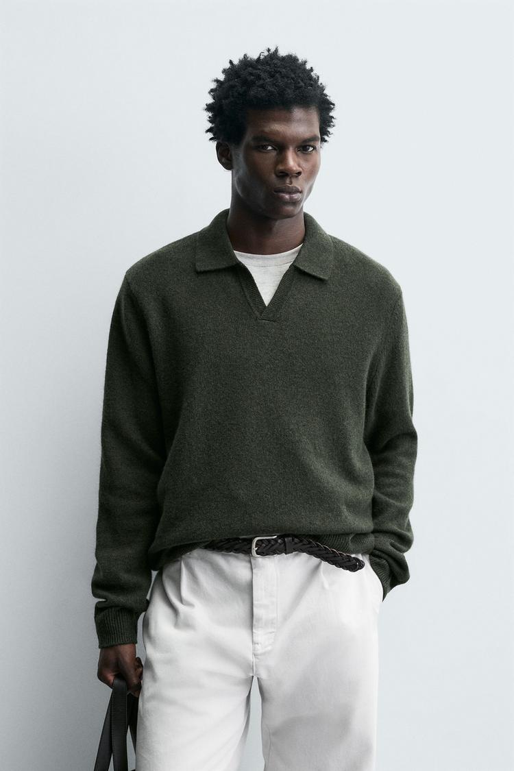 ZARA ШЕРСТЯНОЕ ПОЛО, ЗЕЛЕНЫЙ