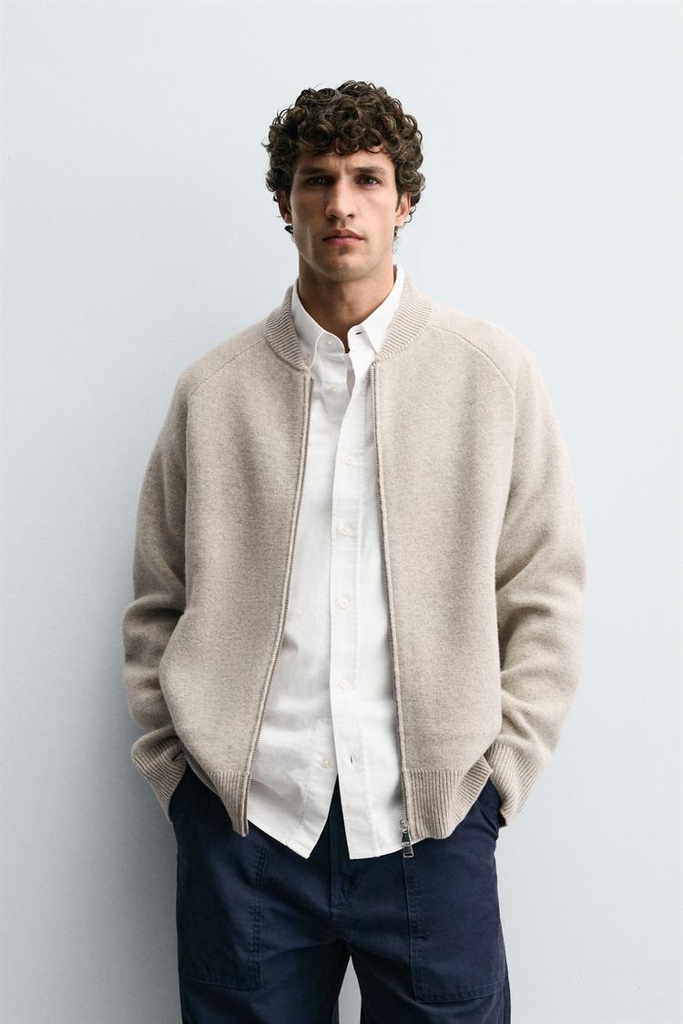 ZARA ШЕРСТЯНОЙ КАРДИГАН, СЕРЫЙ/БЕЖЕВЫЙ