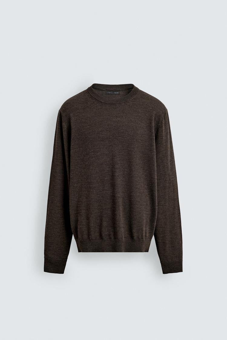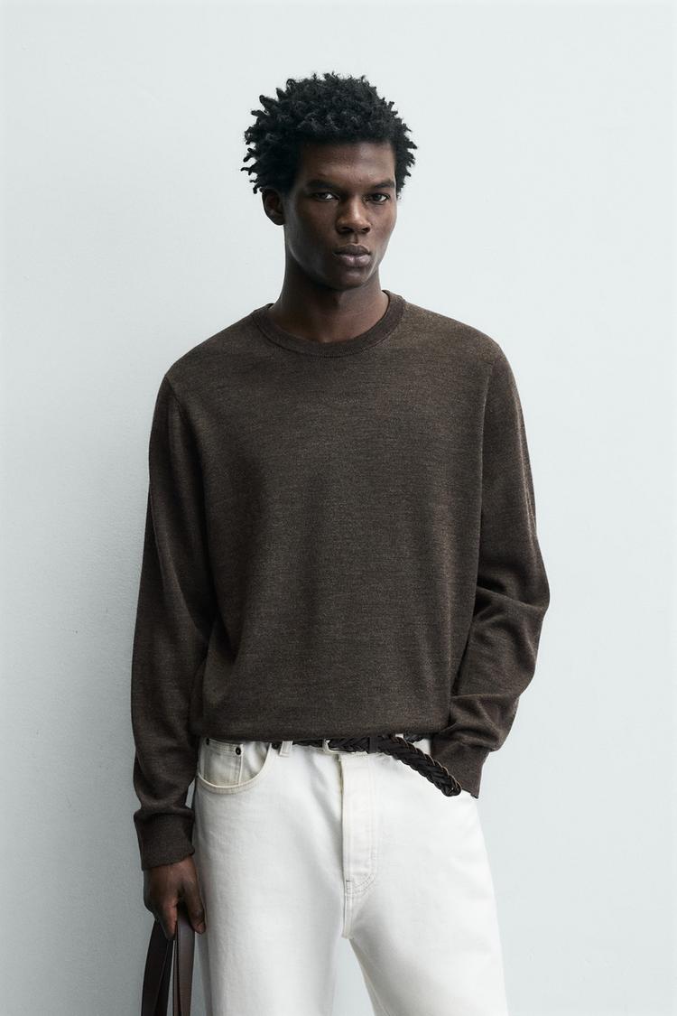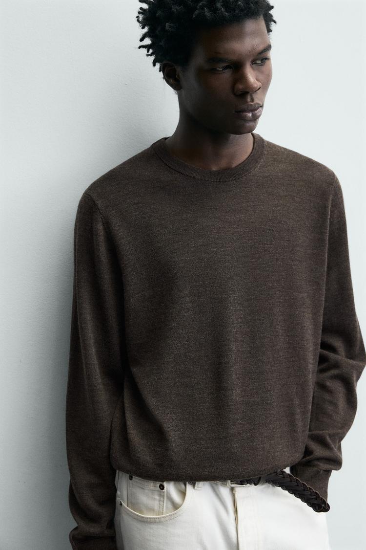 ZARA ШЕРСТЯНОЙ СВИТЕР КЛАССИЧЕСКОГО КРОЯ, КОРИЧНЕВЫЙ МЕЛАНЖ