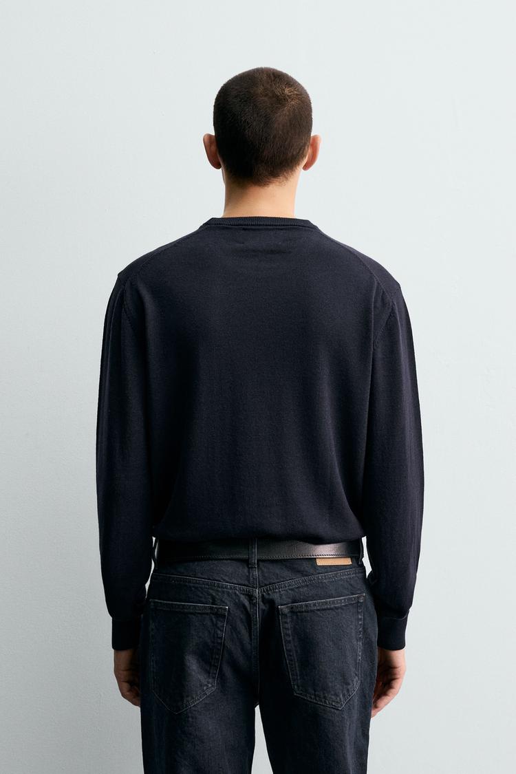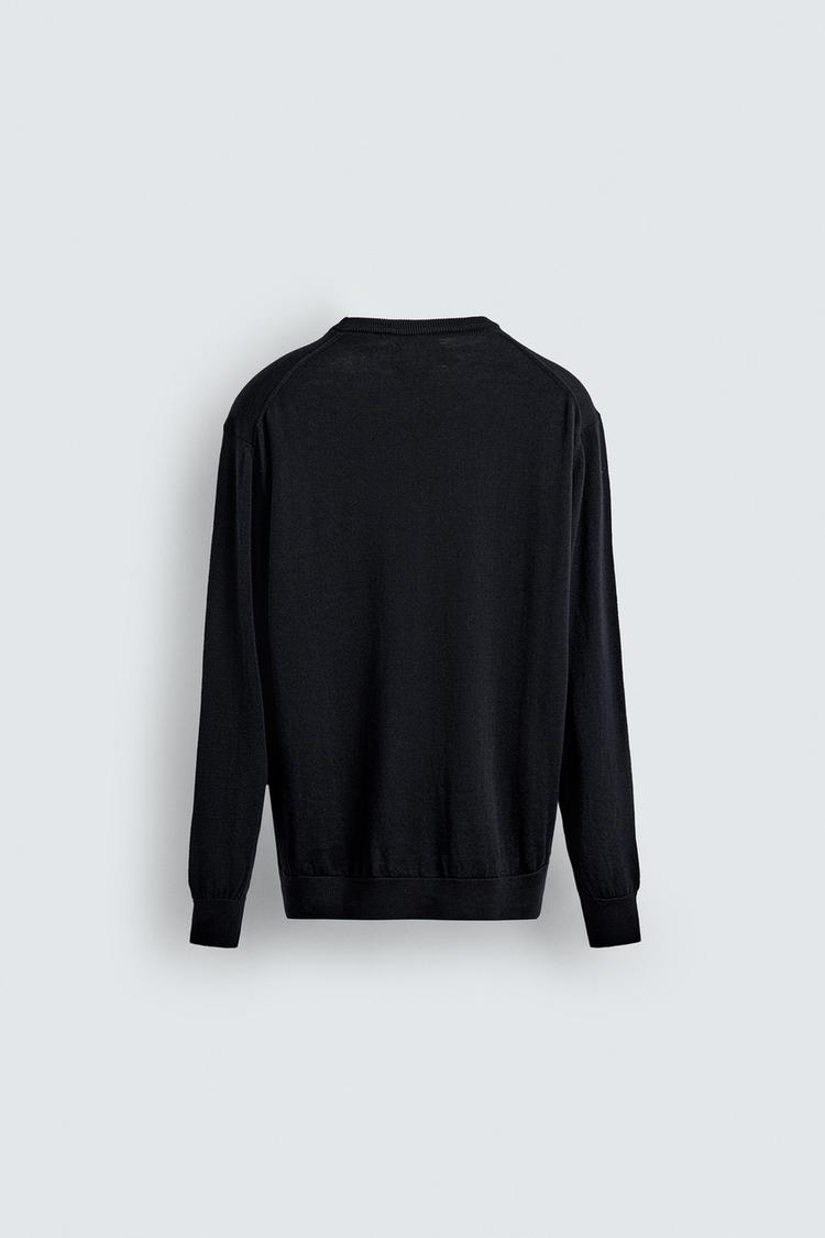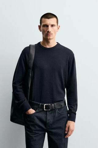 ZARA ШЕРСТЯНОЙ СВИТЕР КЛАССИЧЕСКОГО КРОЯ, МОРСКОЙ СИНИЙ