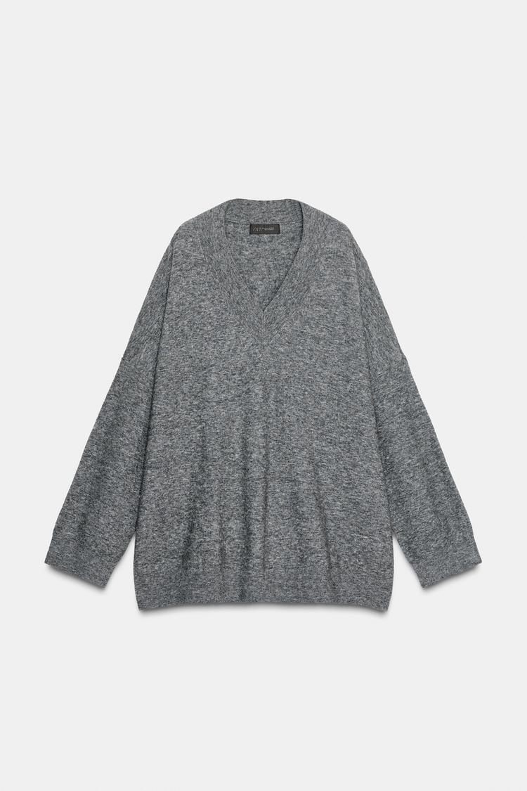 ZARA ШЕРСТЯНОЙ СВИТЕР ОВЕРСАЙЗ, СЕРЫЙ МЕЛАНЖ