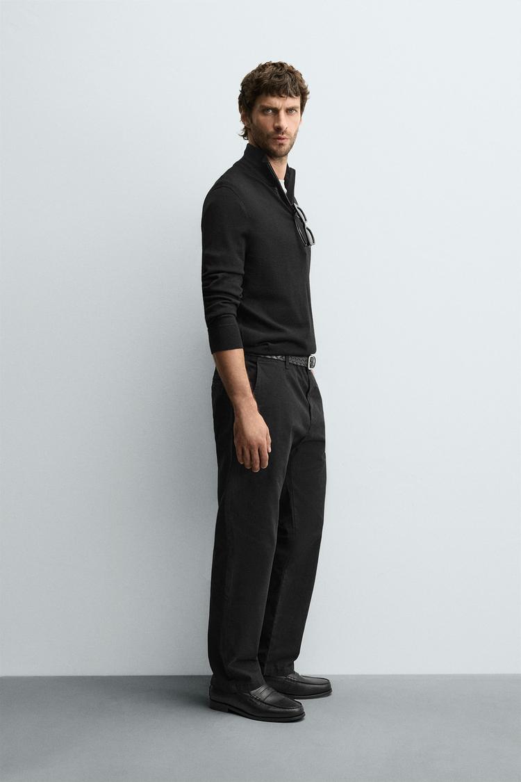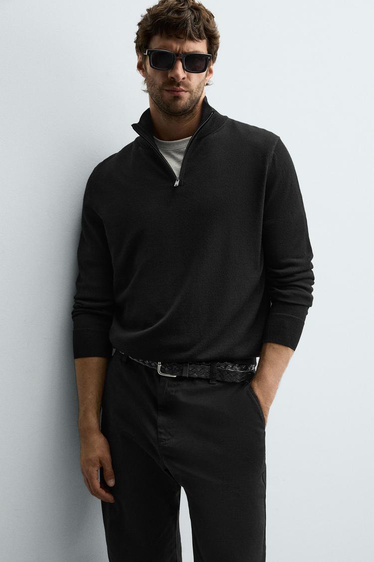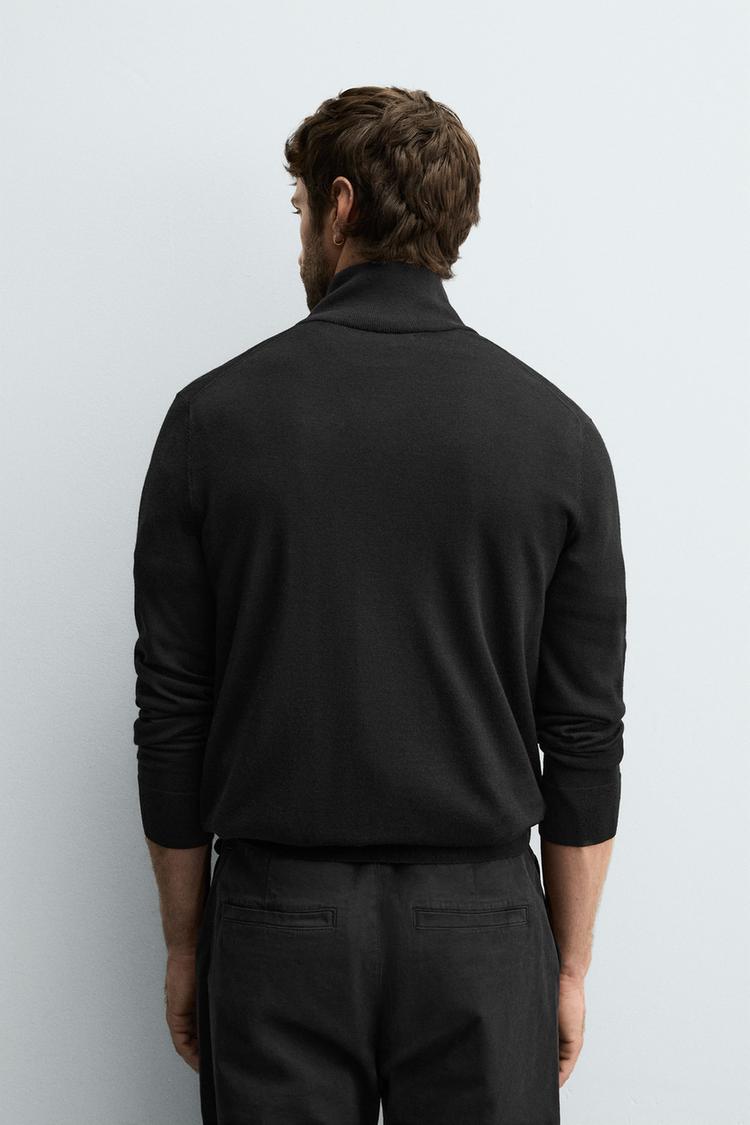 ZARA ШЕРСТЯНОЙ СВИТЕР С ВОРОТНИКОМ НА МОЛНИИ, ЧЕРНЫЙ