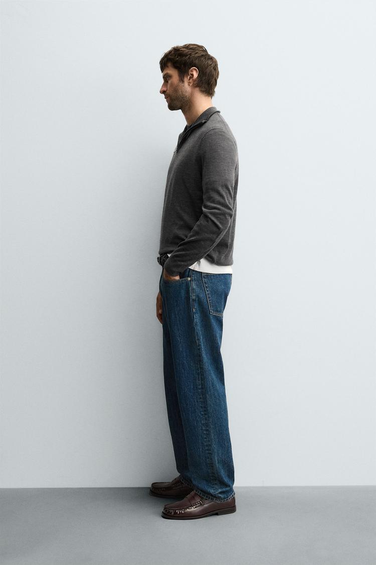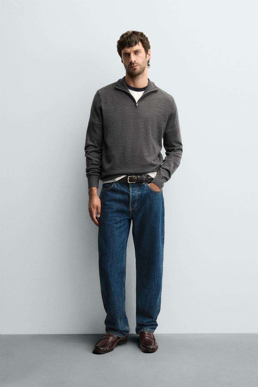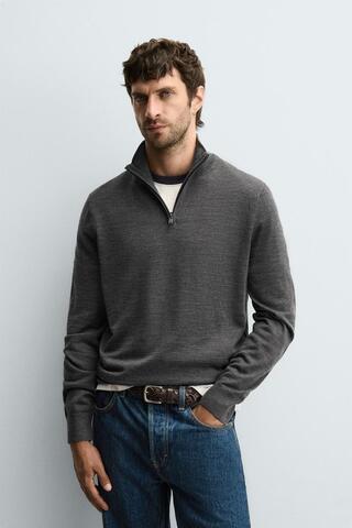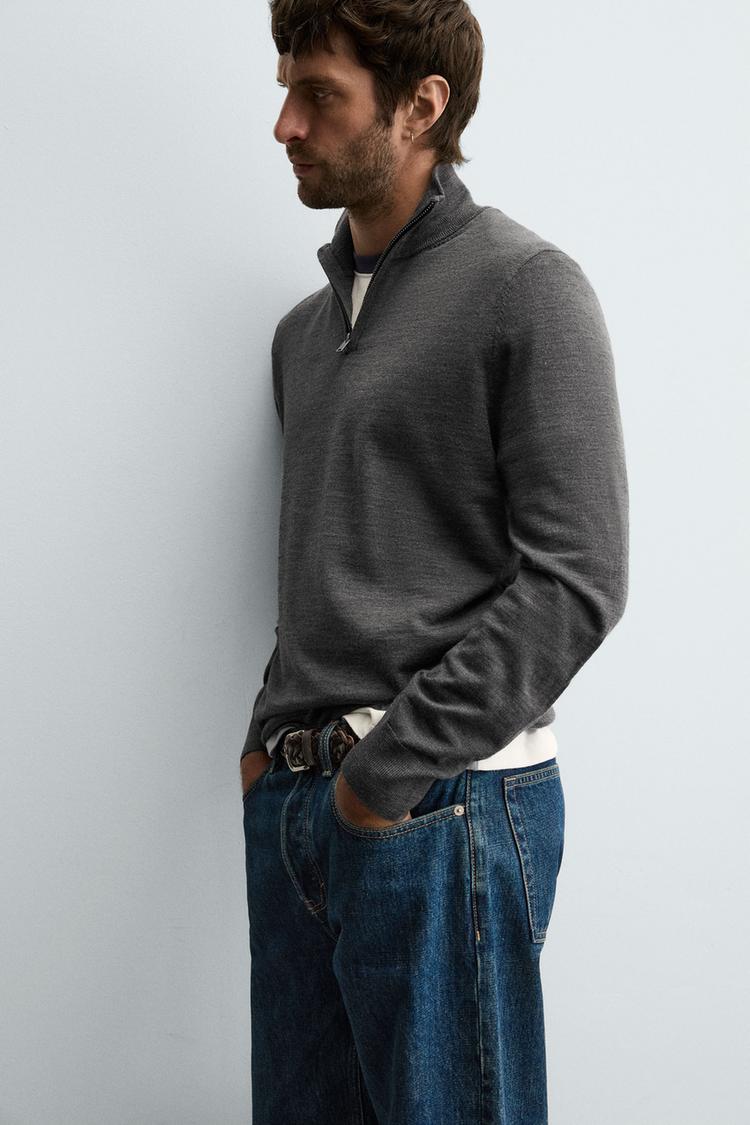 ZARA ШЕРСТЯНОЙ СВИТЕР С ВОРОТНИКОМ НА МОЛНИИ, СЕРЫЙ МЕЛАНЖ