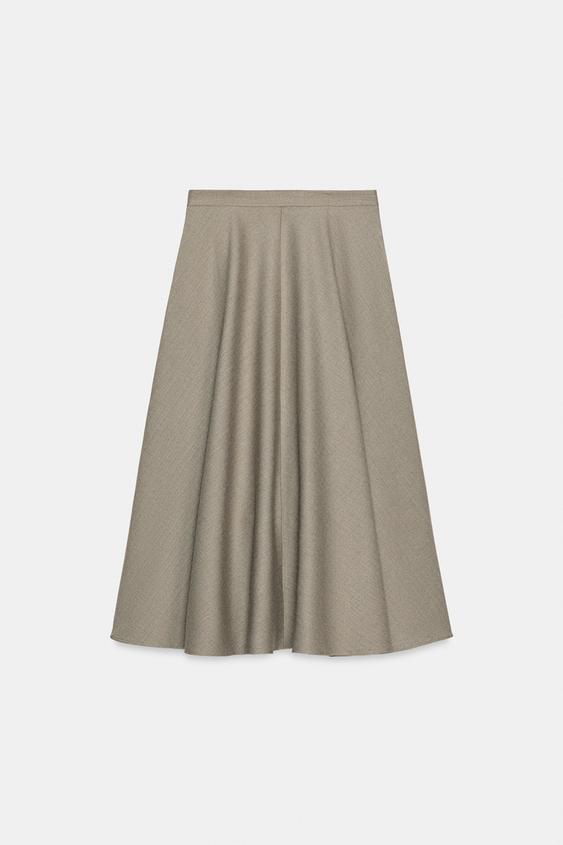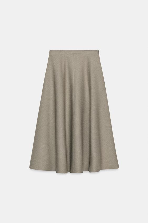 ZARA ШИРОКАЯ ЮБКА В ЕЛОЧКУ — ZW COLLECTION, БЕЖЕВЫЙ МЕЛАНЖ
