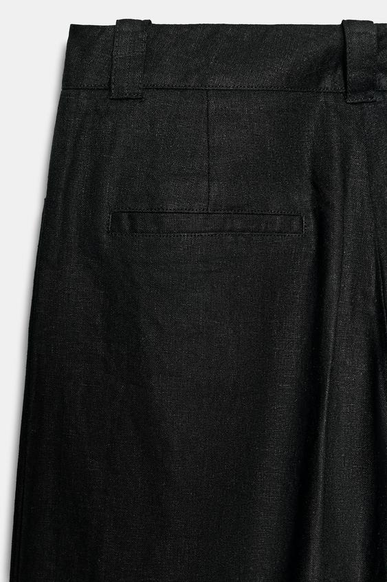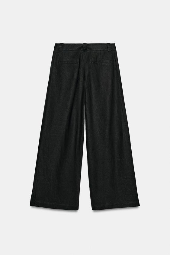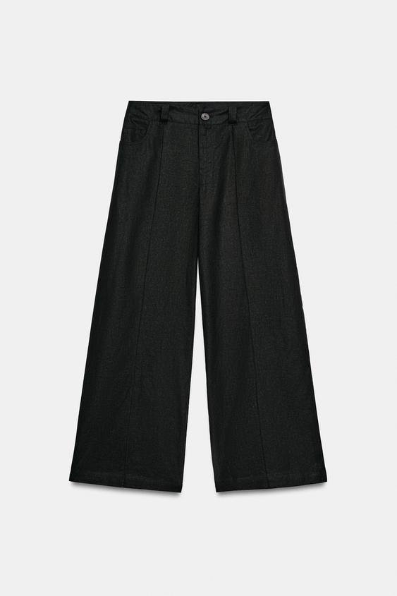 ZARA ШИРОКИЕ БРЮКИ ИЗ ЛЬНА, ЧЕРНЫЙ