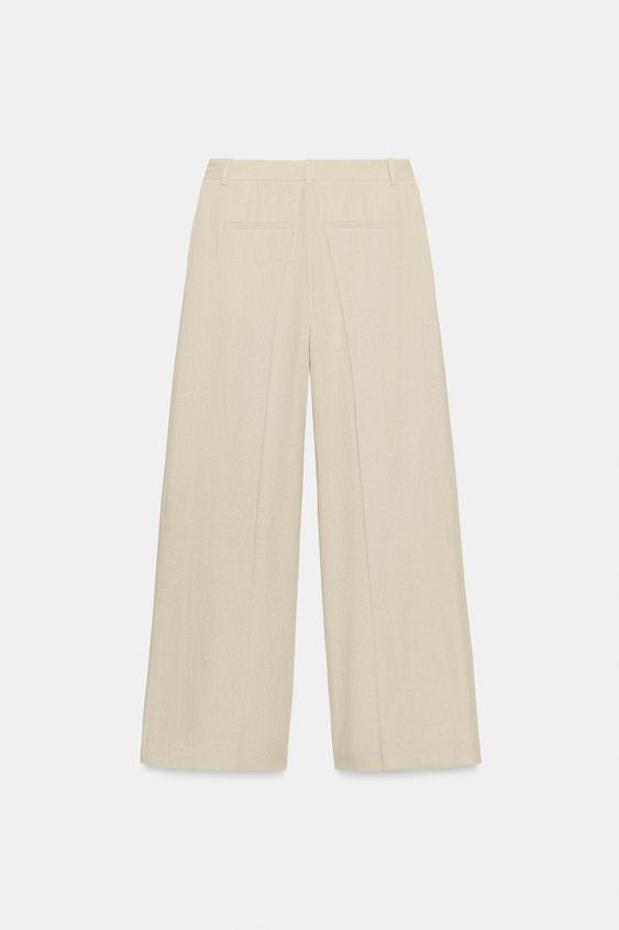 ZARA ШИРОКИЕ БРЮКИ ИЗ ЛЬНА, СВЕТЛО-БЕЖЕВЫЙ