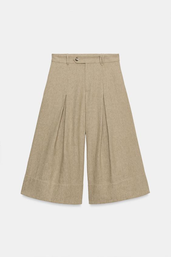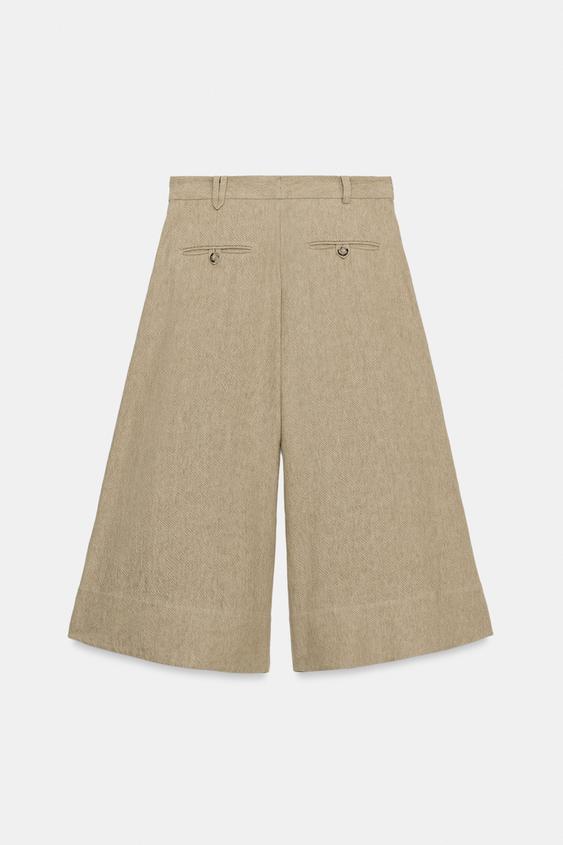 ZARA ШИРОКИЕ БРЮКИ ИЗ ЛЬНА — ZW COLLECTION, ХАКИ