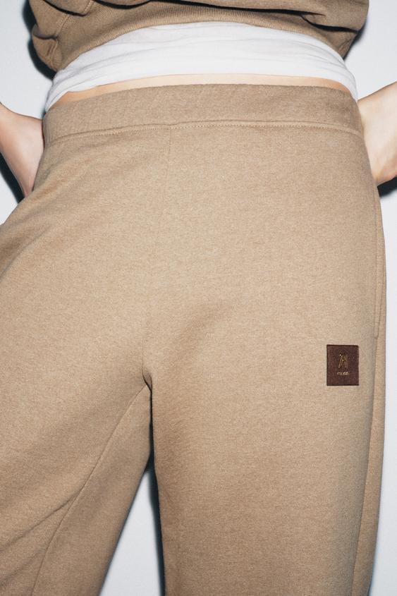 Брюки из хлопковой пряжи. Средняя посадка, эластичный пояс. Скрытые боковые карманы в швах. Декоративная нашивка спереди с гравировкой ZA. Широкие штанины.