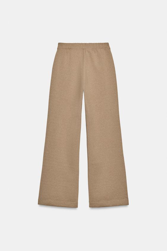 ZARA ШИРОКИЕ БРЮКИ ИЗ МЯГКОЙ ТКАНИ, РЫЖЕВАТО-КОРИЧНЕВЫЙ