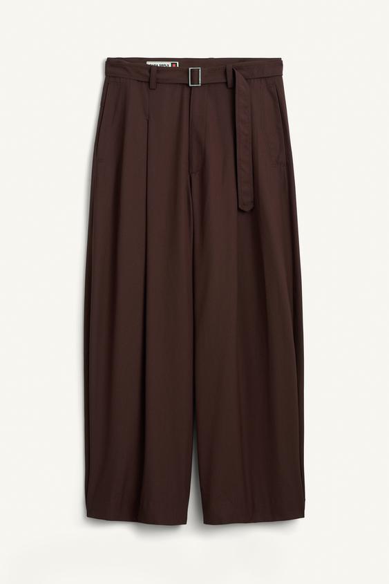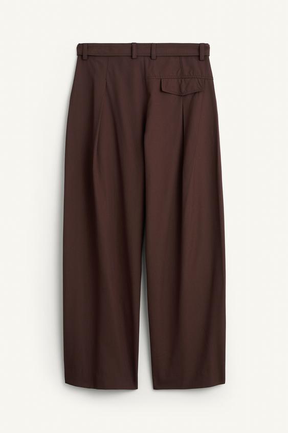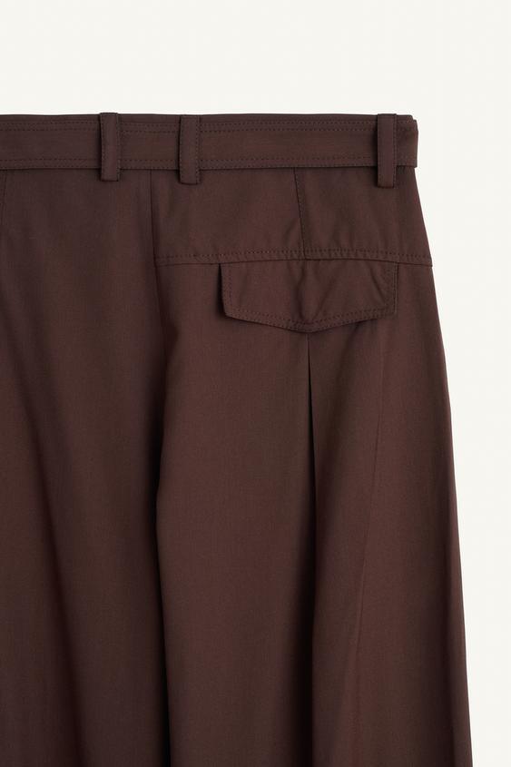 ZARA ШИРОКИЕ БРЮКИ ИЗ СТРУЯЩЕЙСЯ ТКАНИ ИЗ ШЕРСТИ И ВИСКОЗЫ, КОРИЧНЕВЫЙ