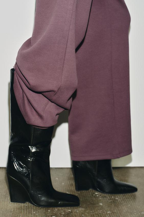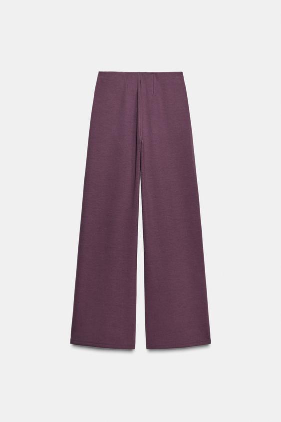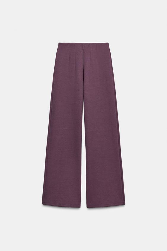 ZARA ШИРОКИЕ БРЮКИ ИЗ ТКАНИ ИНТЕРЛОК, БЛЕДНО-ФИОЛЕТОВЫЙ