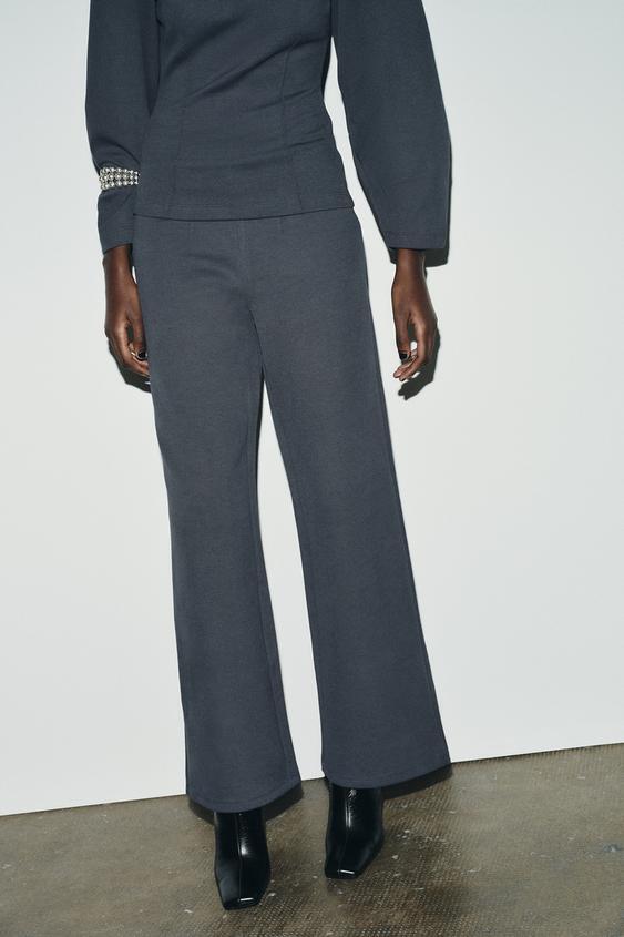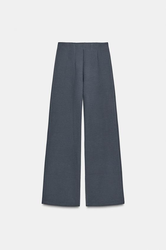 ZARA ШИРОКИЕ БРЮКИ ИЗ ТКАНИ ИНТЕРЛОК, ТЕМНО-СЕРЫЙ
