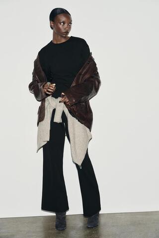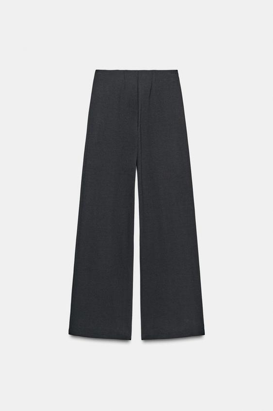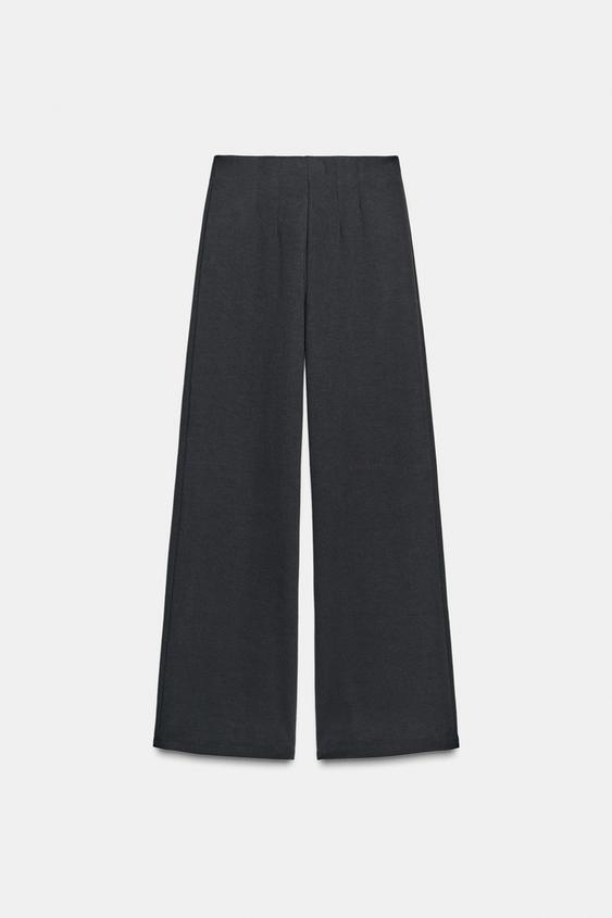 ZARA ШИРОКИЕ БРЮКИ ИЗ ТКАНИ ИНТЕРЛОК,ЧЕРНЫЙ
