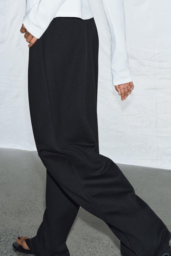 ZARA ШИРОКИЕ БРЮКИ ПРЯМОГО КРОЯ, ЧЕРНЫЙ