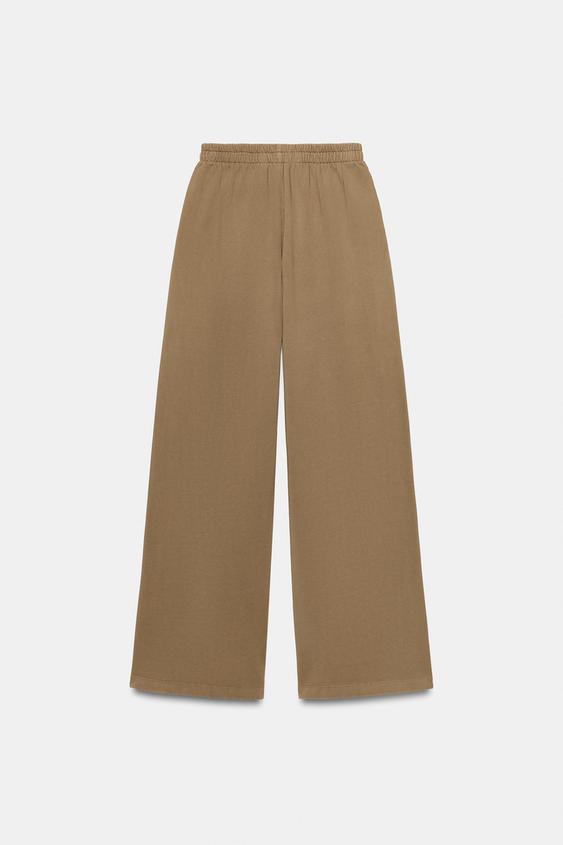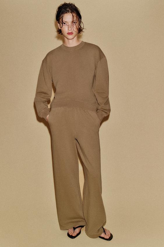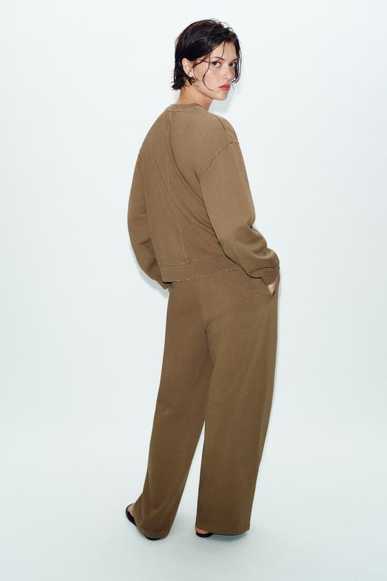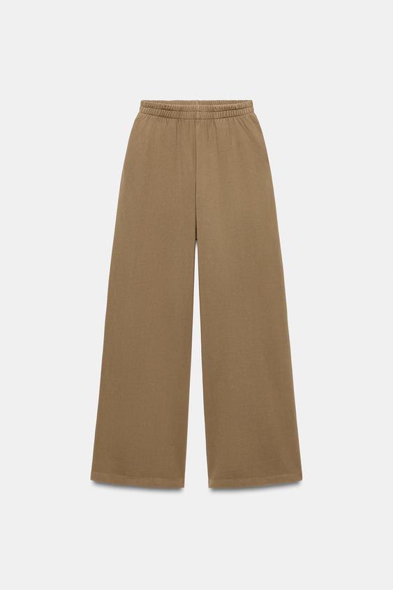 ZARA ШИРОКИЕ БРЮКИ С ЭФФЕКТОМ ПОТЕРТОСТИ, СЕРО-КОРИЧНЕВЫЙ