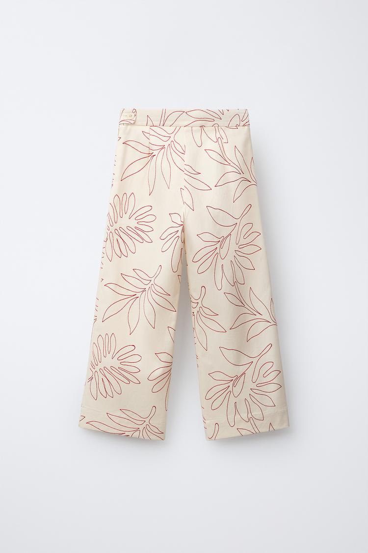 ZARA ШИРОКИЕ БРЮКИ С КОНТРАСТНОЙ ВЫШИВКОЙ , ЭКРЮ/КРАСНЫЙ