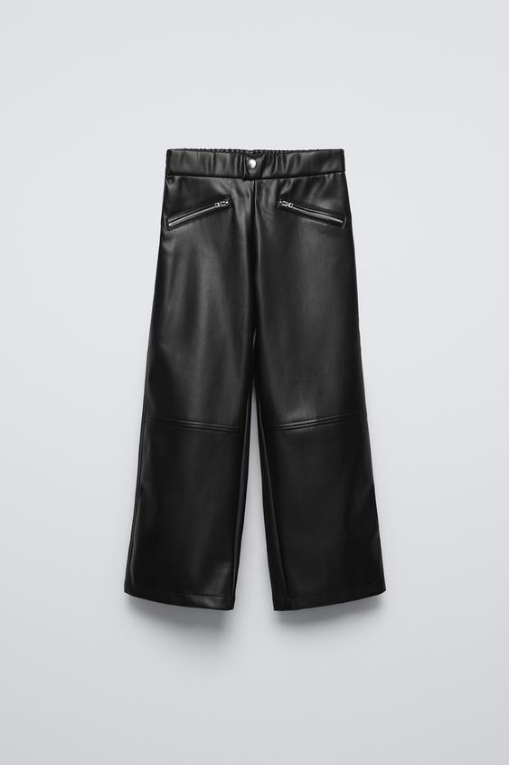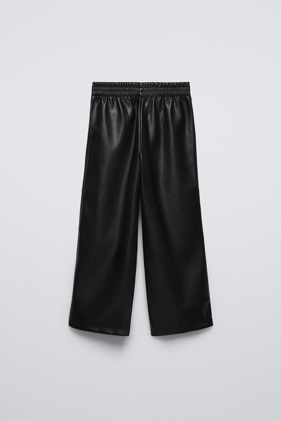 ZARA ШИРОКИЕ БРЮКИ С КОЖАНЫМ ЭФФЕКТОМ, ЧЕРНЫЙ