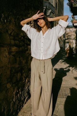 ZARA ШИРОКИЕ БРЮКИ С ПОЯСОМ, МЯГКИЙ КАШТАНОВЫЙ