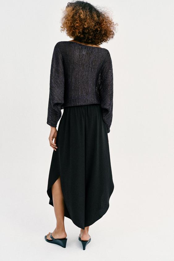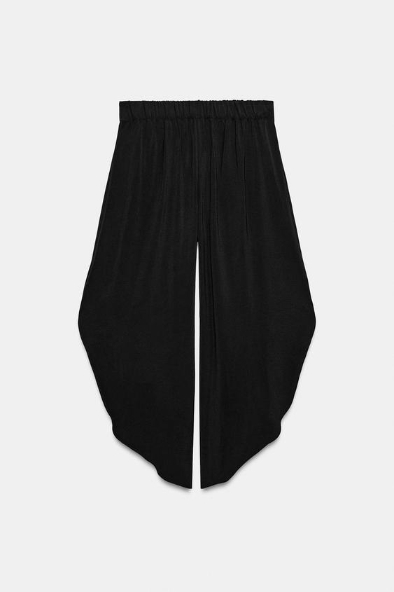 ZARA ШИРОКИЕ БРЮКИ С РАЗРЕЗАМИ, ЧЕРНЫЙ