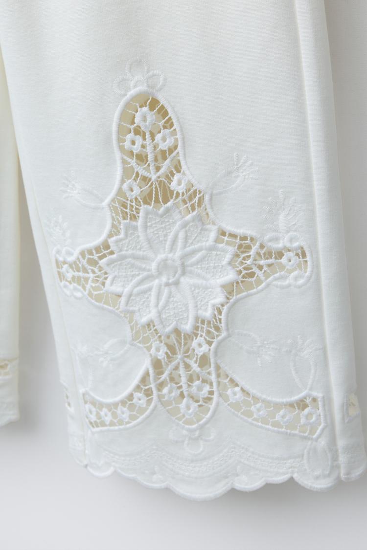 Широкие брюки с эластичной резинкой на талии и вышитыми деталями на штанинах.