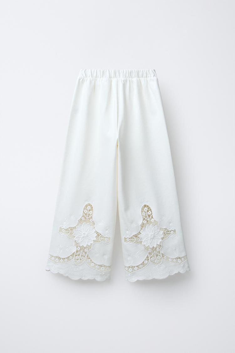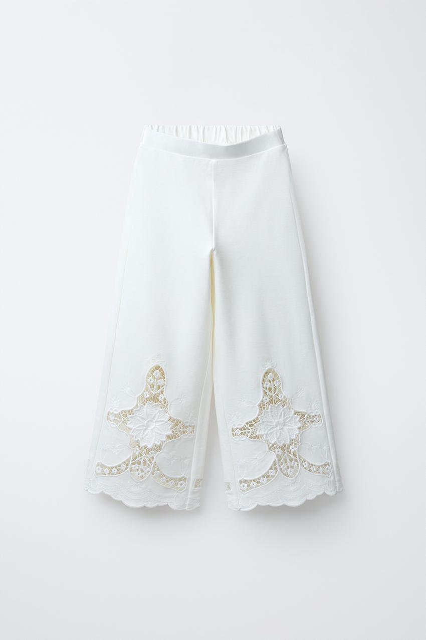 ZARA ШИРОКИЕ БРЮКИ С ВЫШИВКОЙ, ЭКРЮ