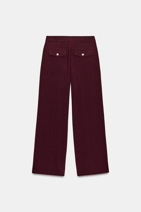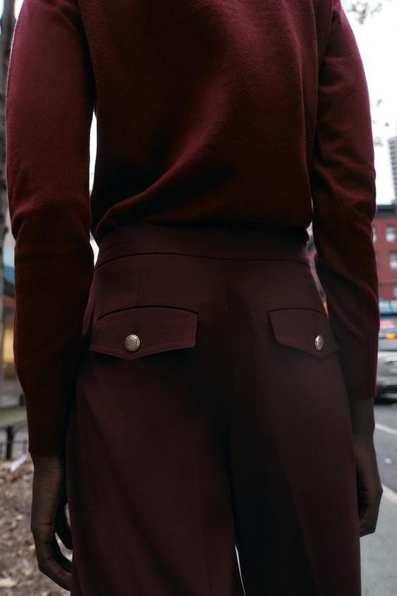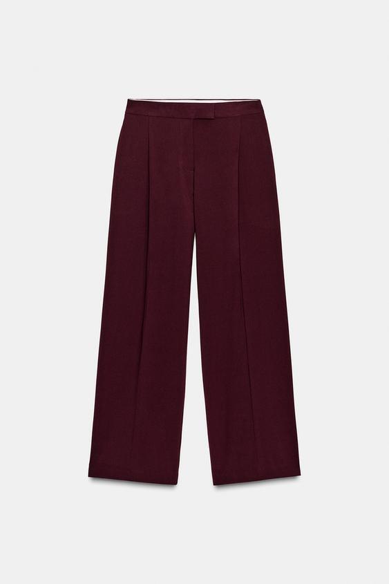 ZARA ШИРОКИЕ БРЮКИ С ВЫСОКОЙ ПОСАДКОЙ, БУРГУНДИ