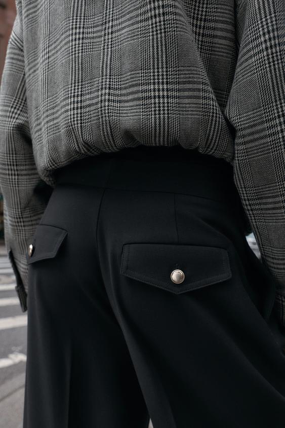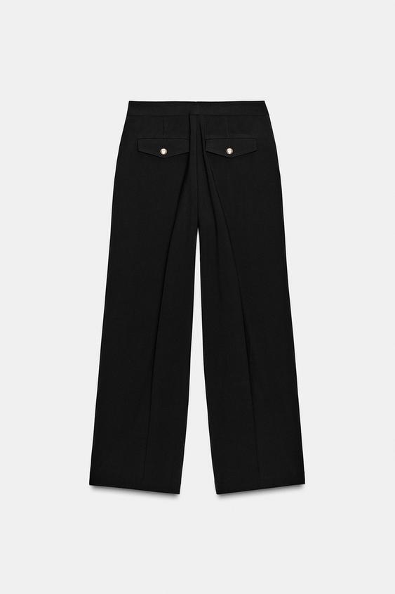 ZARA ШИРОКИЕ БРЮКИ С ВЫСОКОЙ ПОСАДКОЙ, ЧЕРНЫЙ