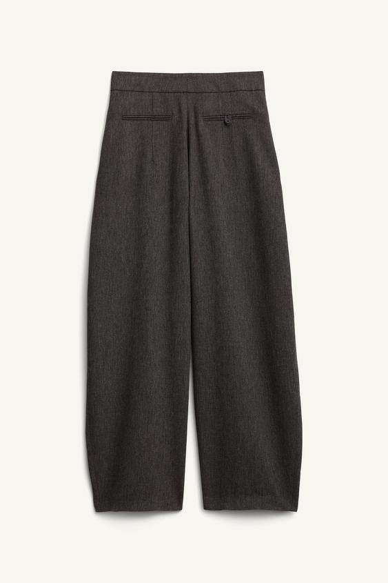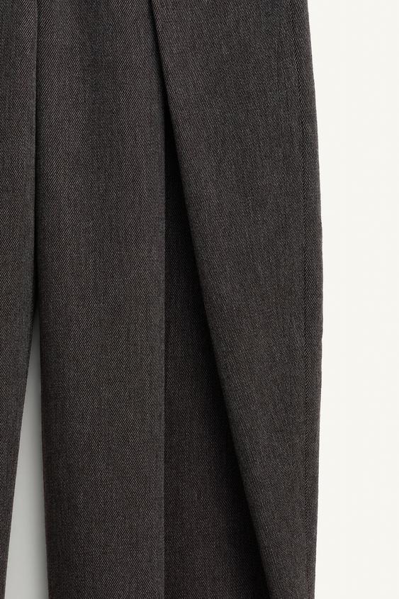 ZARA ШИРОКИЕ БРЮКИ СО СКЛАДКАМИ ИЗ ШЕРСТИЮ, ТЕМНО-КОРИЧНЕВЫЙ