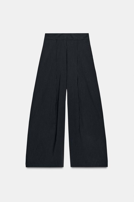 ZARA ШИРОКИЕ БРЮКИ В ПОЛОСКУ — ZW COLLECTION, ТЕМНО-СЕРЫЙ