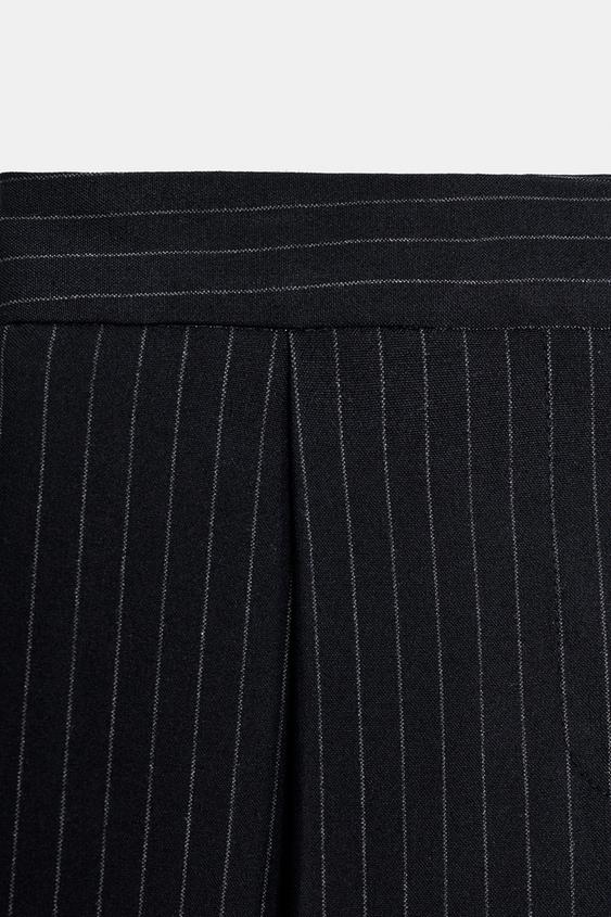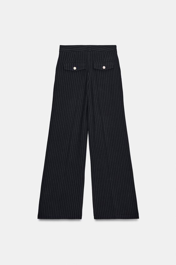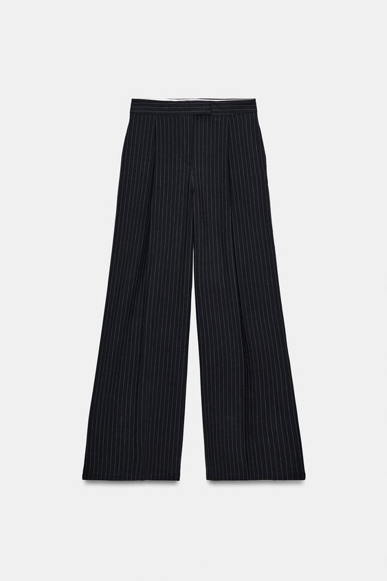 ZARA ШИРОКИЕ БРЮКИ В ТОНКУЮ ПОЛОСКУ С ЗАЩИПАМИ, МОРСКОЙ СИНИЙ