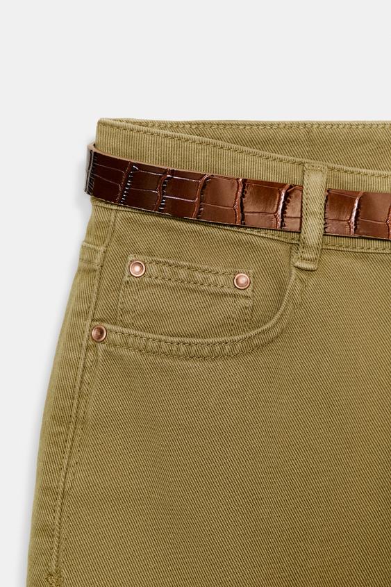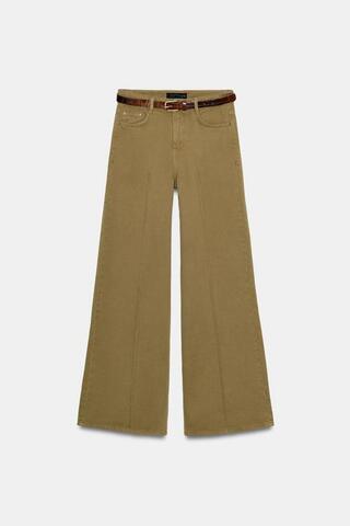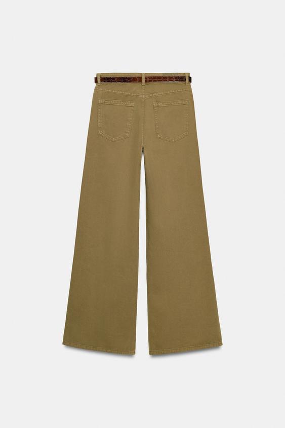 ZARA ШИРОКИЕ ДЖИНСЫ Z1975 С ПОЯСОМ, ХАКИ