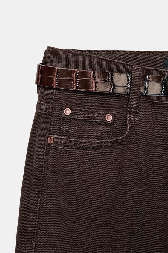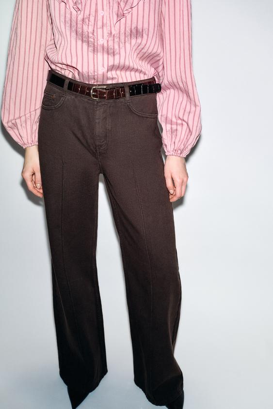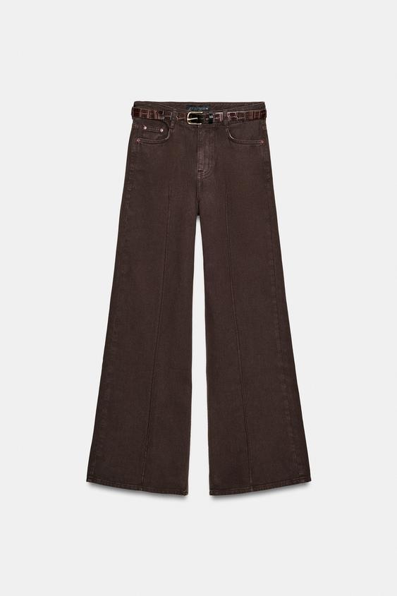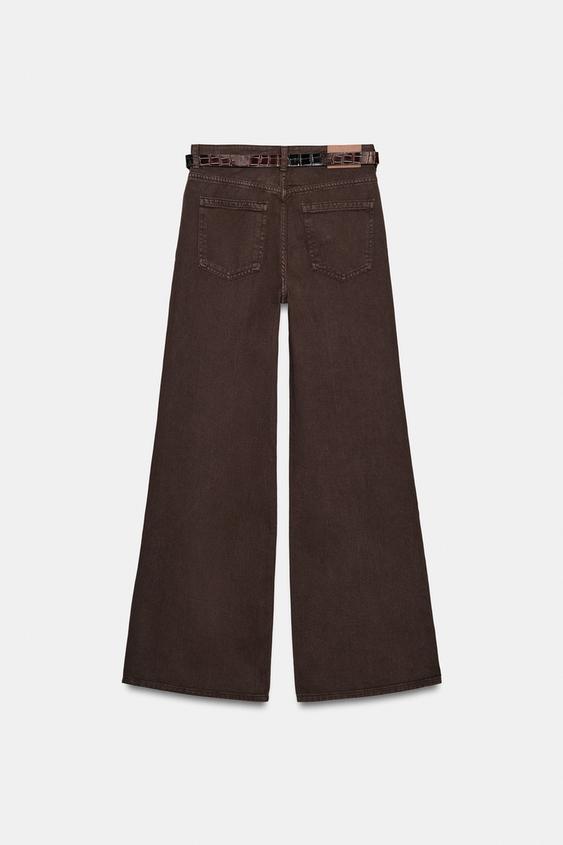 ZARA ШИРОКИЕ ДЖИНСЫ Z1975 С ПОЯСОМ, КОРИЧНЕВЫЙ