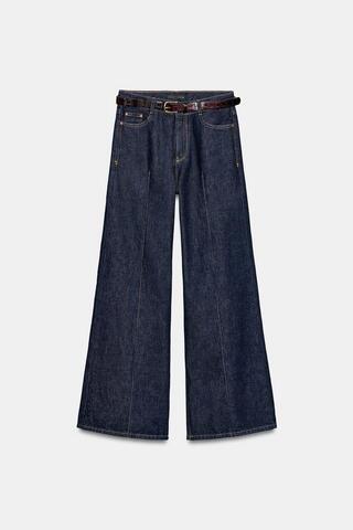 ZARA ШИРОКИЕ ДЖИНСЫ Z1975 С ПОЯСОМ, СИНИЙ