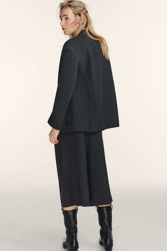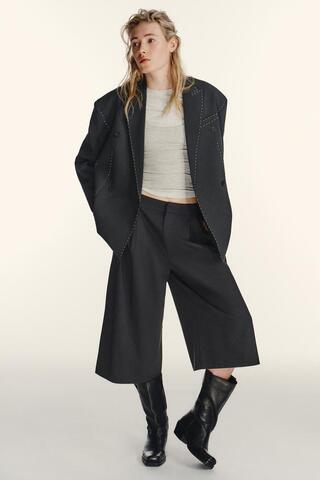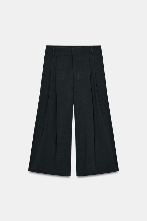 ZARA ШИРОКИЕ ШОРТЫ СО СКЛАДКАМИ, АНТРАЦИТОВО-СЕРЫЙ