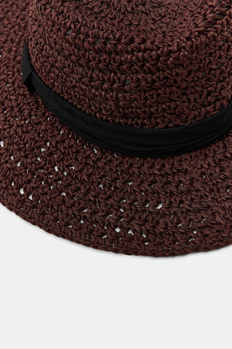 ZARA ШЛЯПА С КОНТРАСТНОЙ ЛЕНТОЙ, КОРИЧНЕВЫЙ