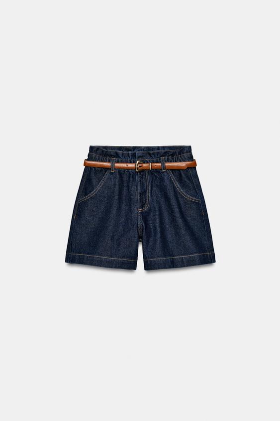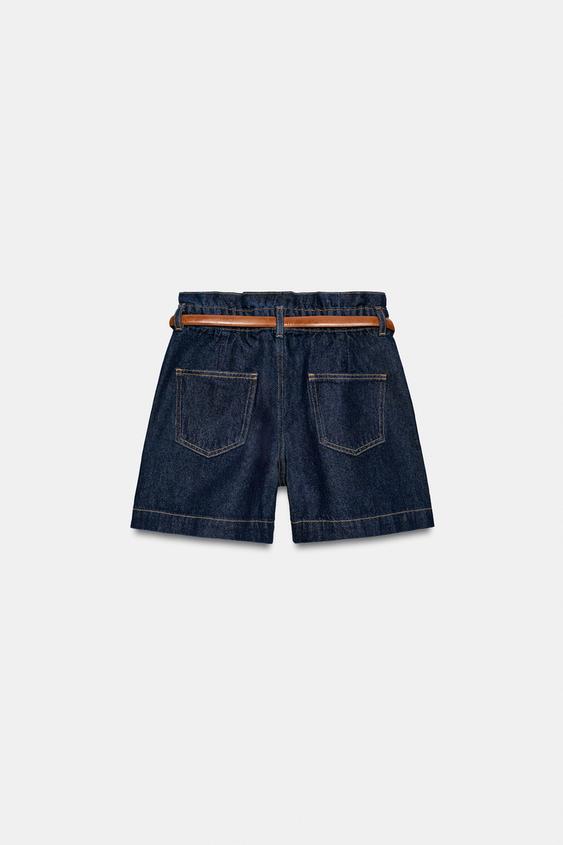 ZARA ШОРТЫ-БЕРМУДЫ BAGGY С ПОЯСОМ, СИНИЙ