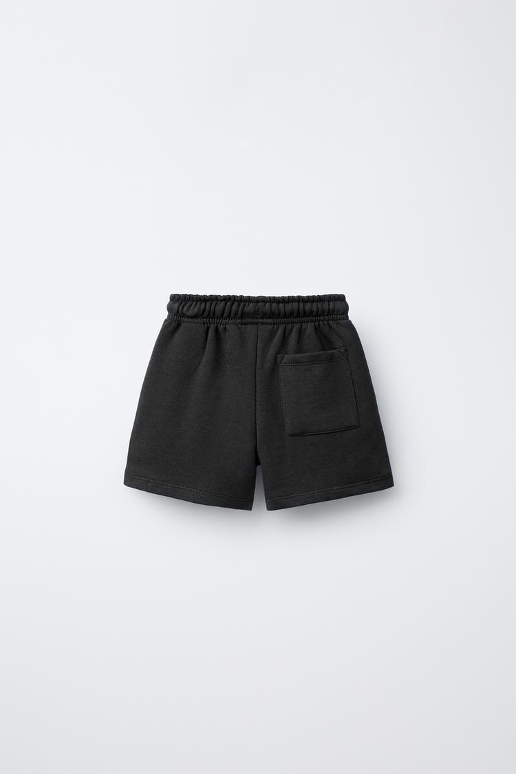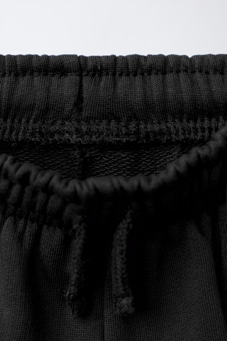 ZARA ШОРТЫ-БЕРМУДЫ БАЗОВЫЕ С ТЕКСТОВЫМ ПРИНТОМ, ЧЕРНЫЙ