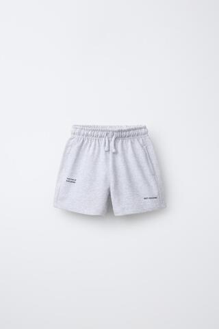 ZARA ШОРТЫ-БЕРМУДЫ БАЗОВЫЕ С ТЕКСТОВЫМ ПРИНТОМ, СЕРЫЙ МЕЛАНЖ