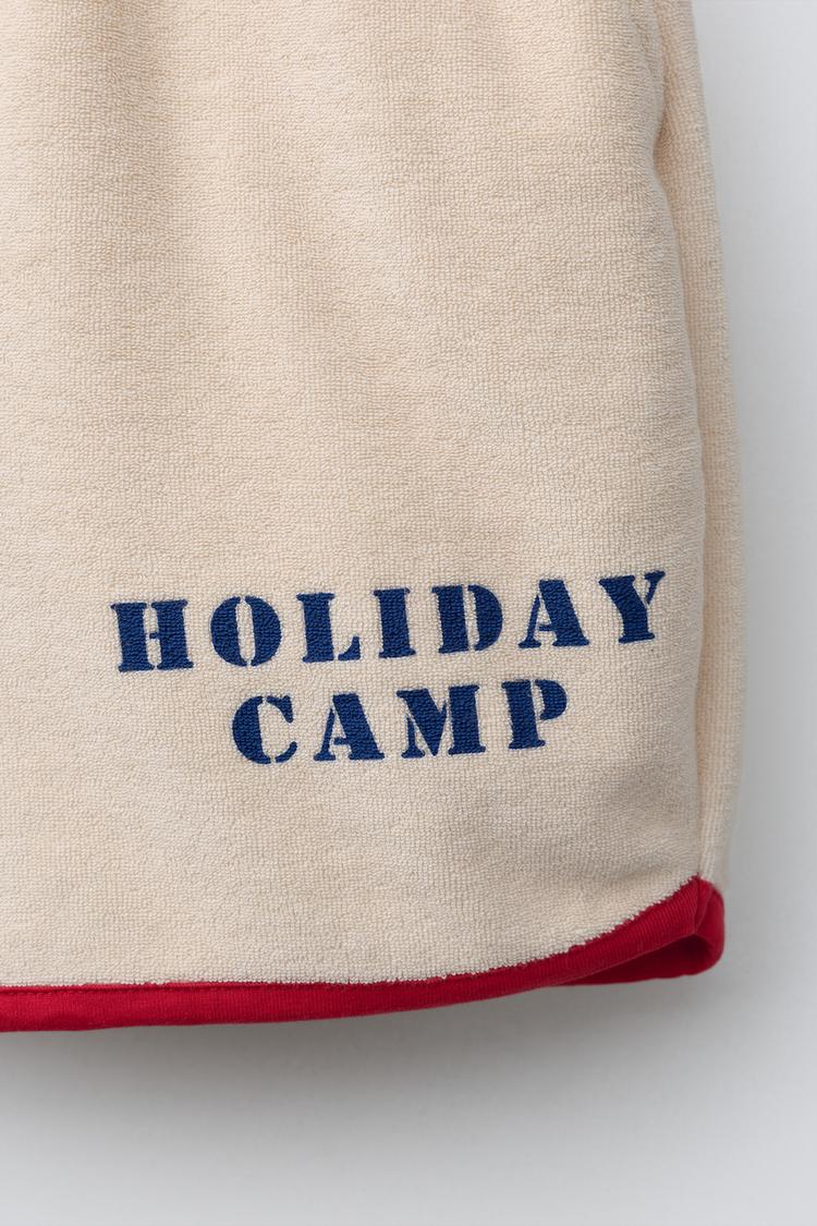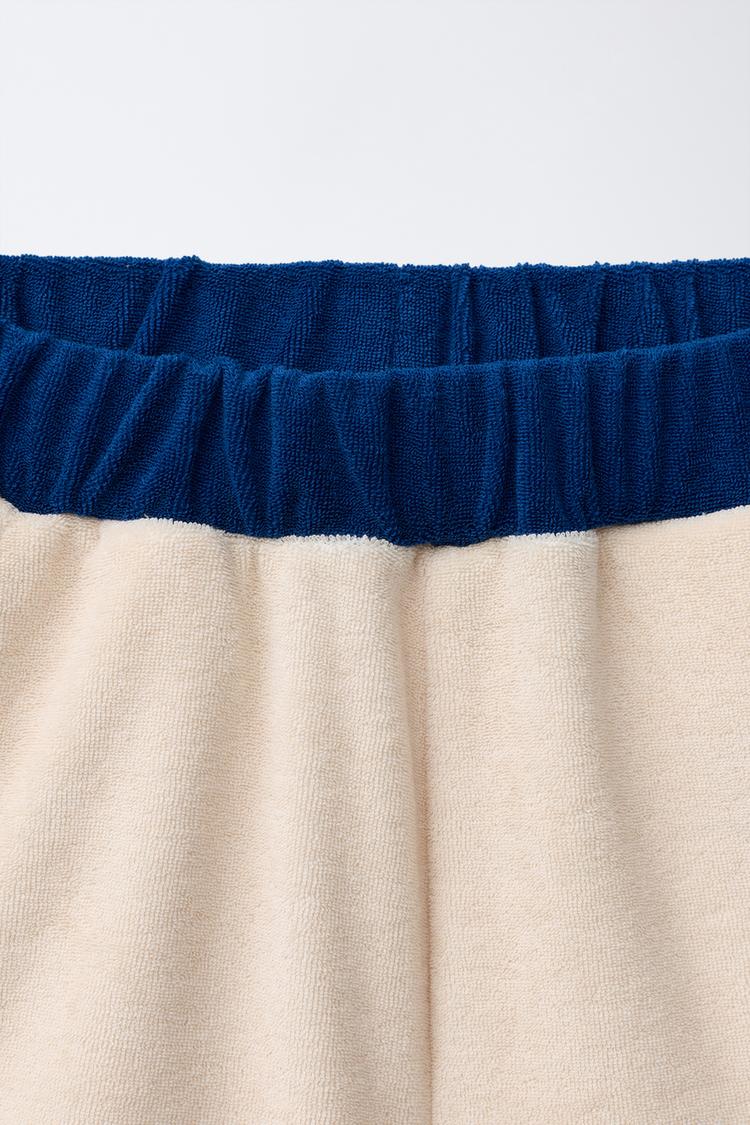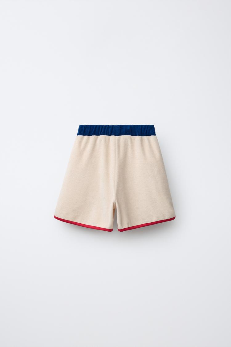 ZARA ШОРТЫ-БЕРМУДЫ ИЗ МАХРОВОЙ ТКАНИ С КОНТРАСТНЫМИ ДЕТАЛЯМИ, ЭКРЮ