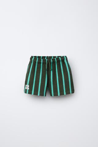 ZARA ШОРТЫ-БЕРМУДЫ ИЗ МАХРОВОЙ ТКАНИ В ПОЛОСКУ, ЗЕЛЕНЫЙ