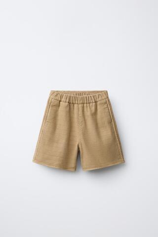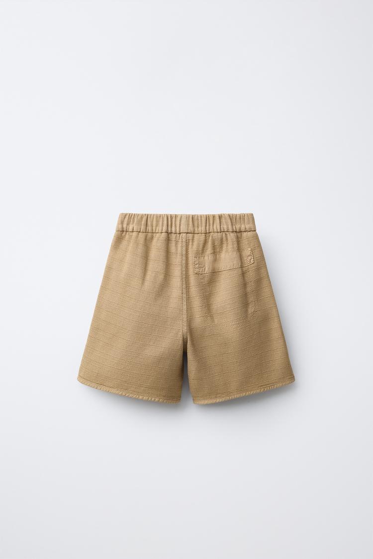 ZARA ШОРТЫ-БЕРМУДЫ ИЗ ТКАНИ В ДЕРЕВЕНСКОМ СТИЛЕ, ПЕСОЧНЫЙ