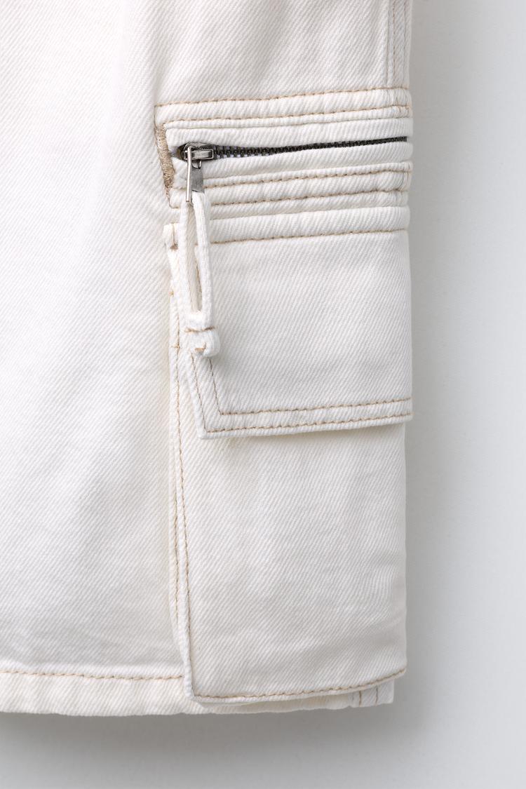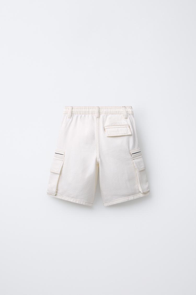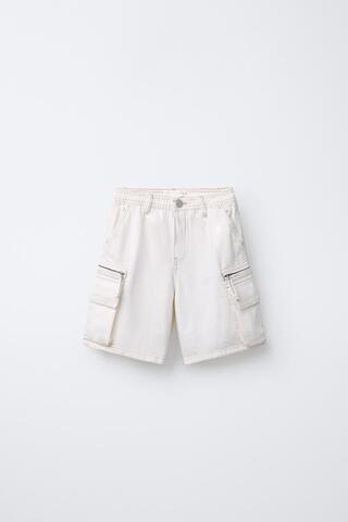 ZARA ШОРТЫ-БЕРМУДЫ С КАРМАНАМИ, ЭКРЮ
