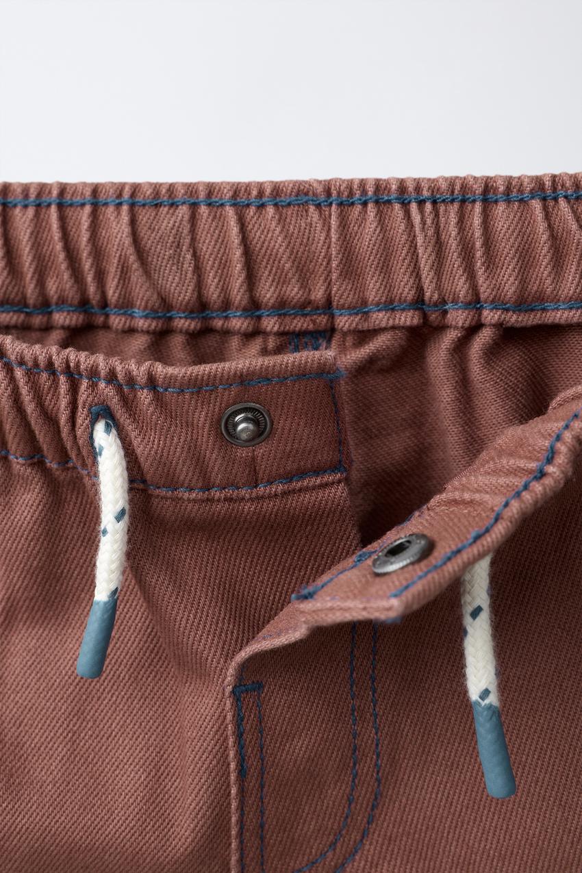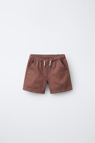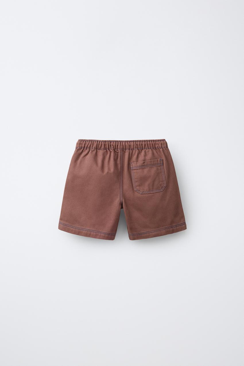 ZARA ШОРТЫ-БЕРМУДЫ С КОНТРАСТНОЙ СТРОЧКОЙ, КОРИЧНЕВЫЙ