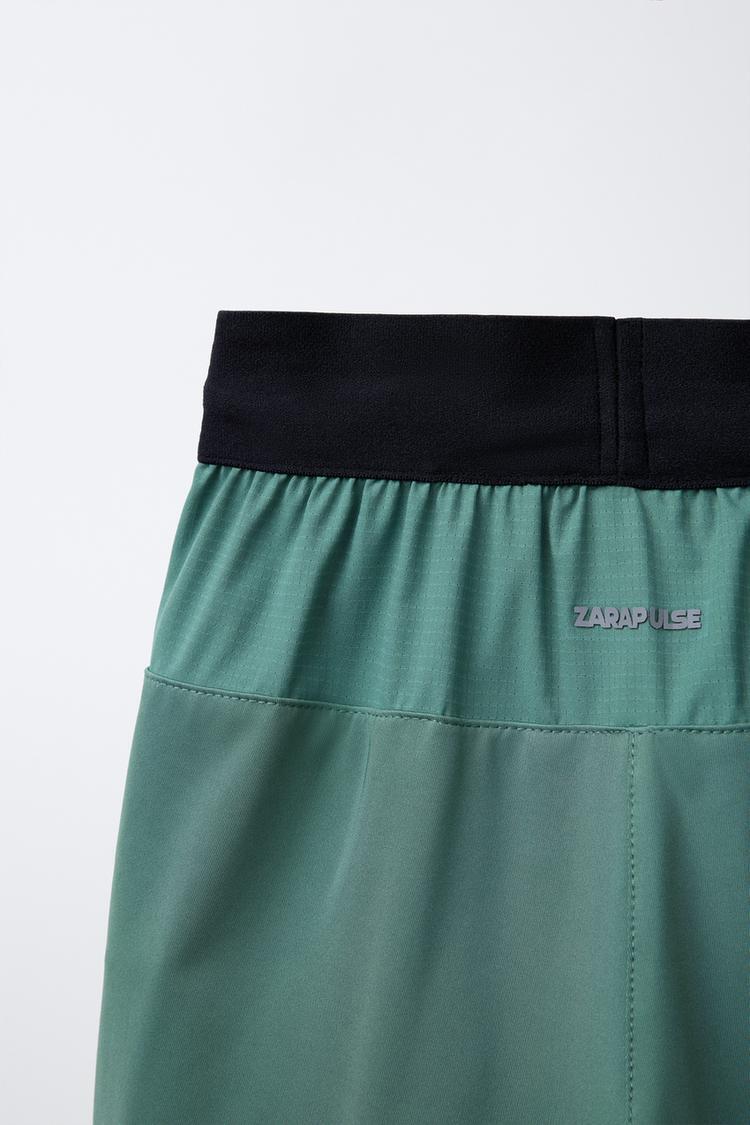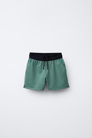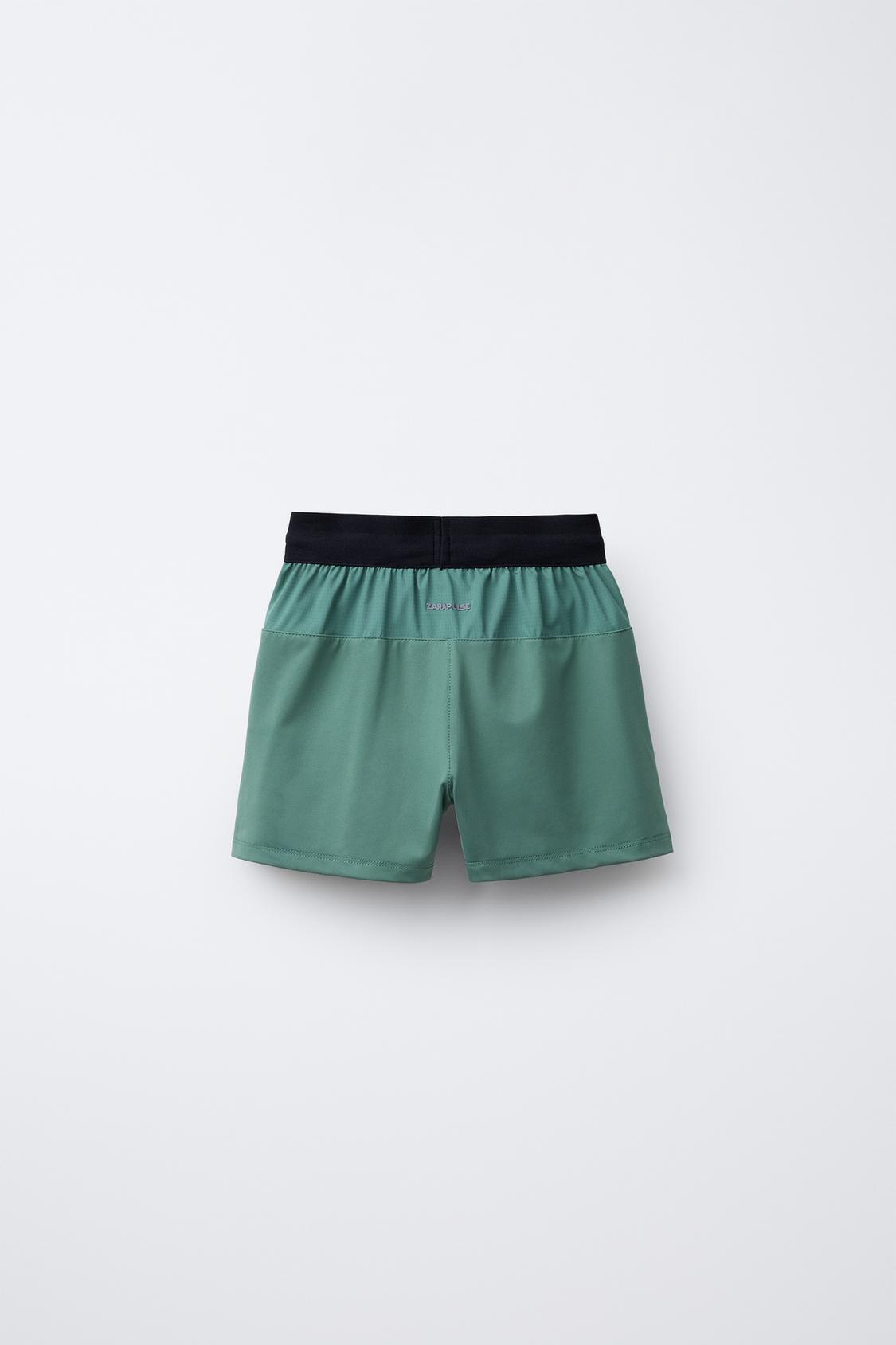 ZARA ШОРТЫ-БЕРМУДЫ С КОНТРАСТНЫМ ЛОГОТИПОМ, ЗЕЛЕНЫЙ
