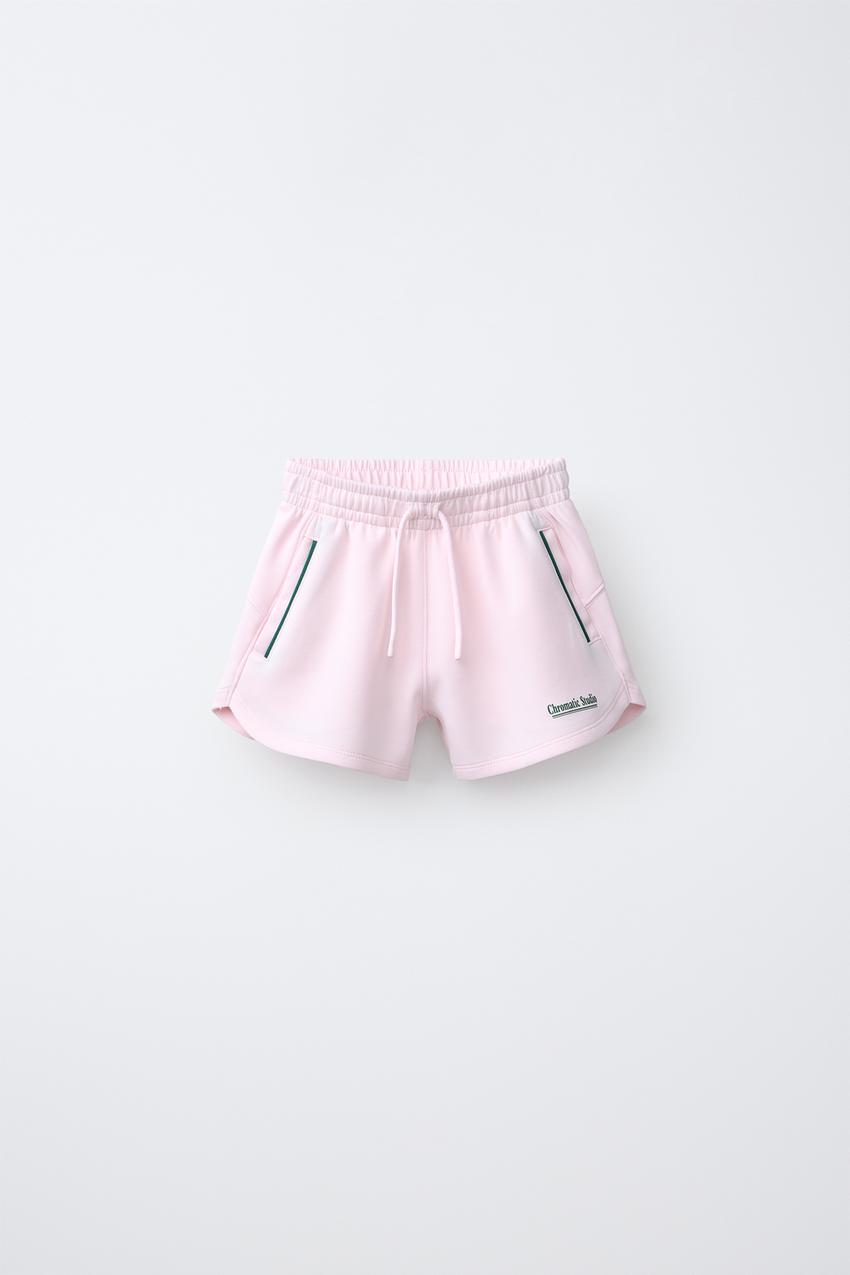 ZARA ШОРТЫ-БЕРМУДЫ С КОНТРАСТНЫМИ ПОЛОСАМИ И МОДАЛОМ, ПАСТЕЛЬНО-РОЗОВЫЙ