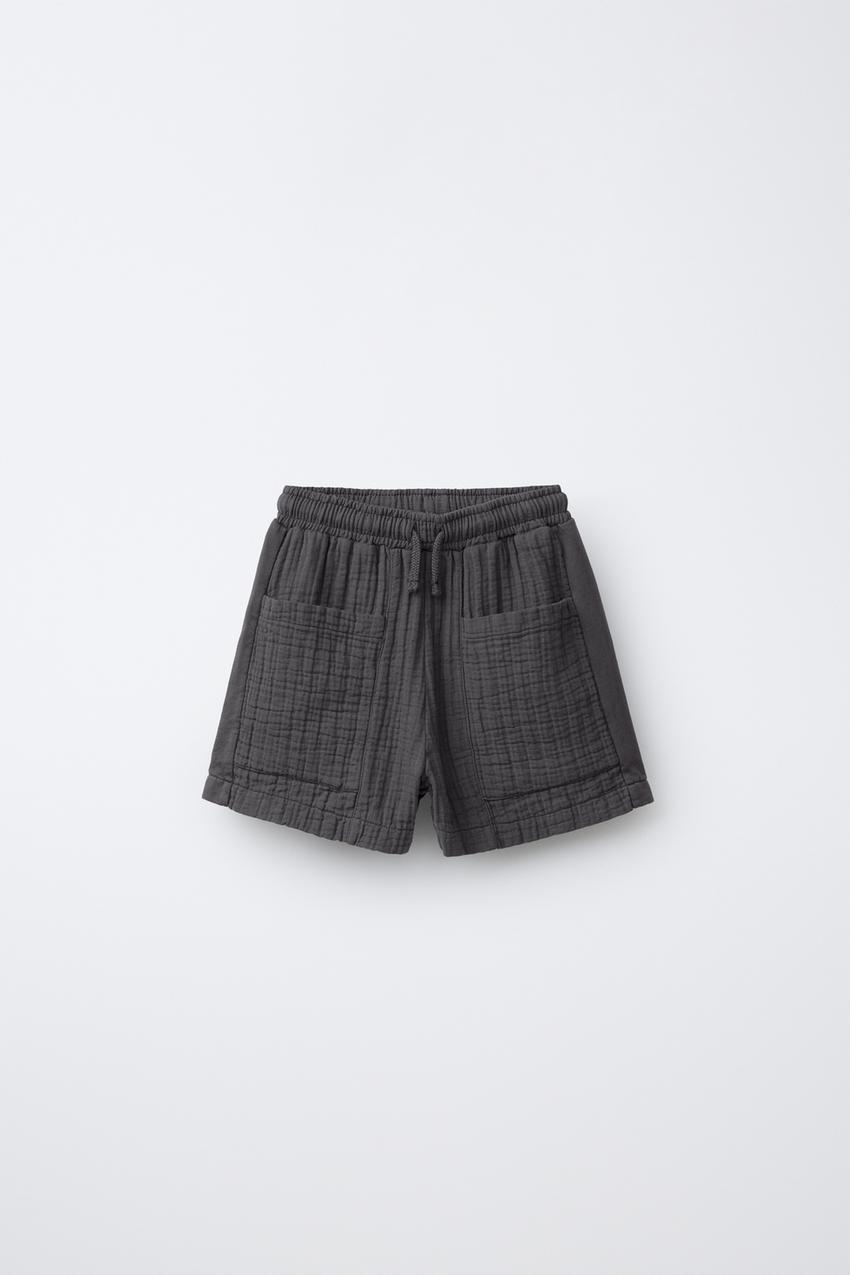 ZARA ШОРТЫ-БЕРМУДЫ С ТЕКСТУРОЙ И КОМБИНИРОВАННЫМИ ДЕТАЛЯМИ, АНТРАЦИТОВО-СЕРЫЙ