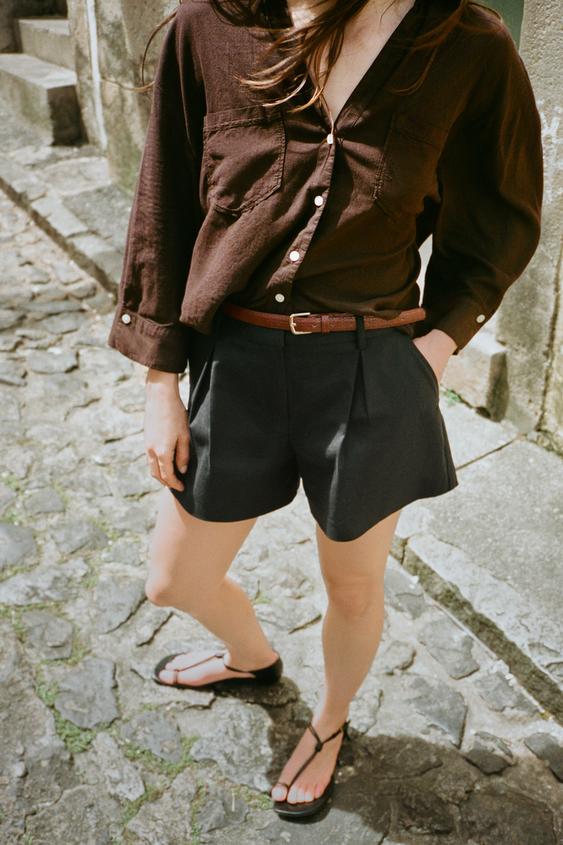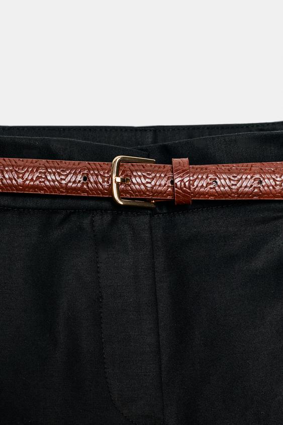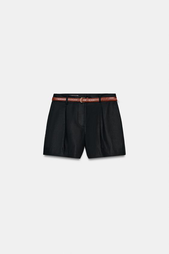 ZARA ШОРТЫ-БЕРМУДЫ С ВЫСОКОЙ ПОСАДКОЙ И РЕМНЕМ, ЧЕРНЫЙ