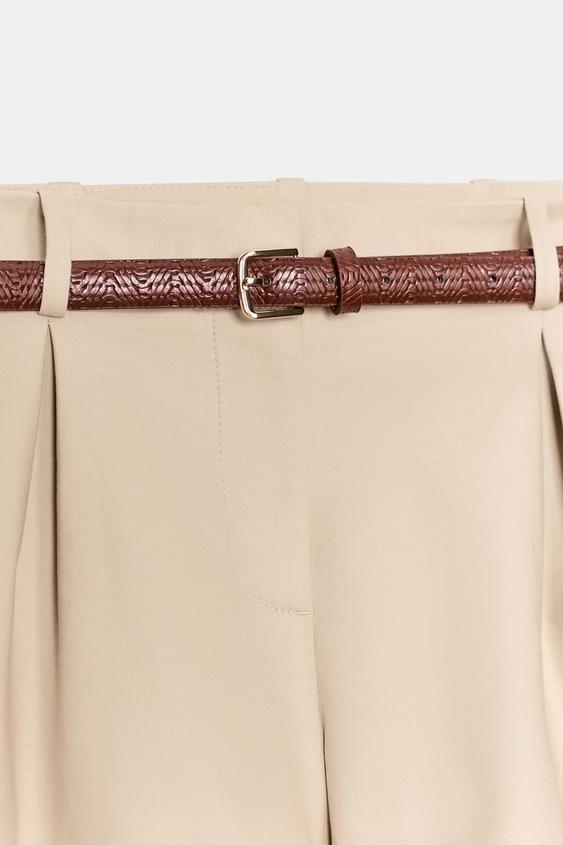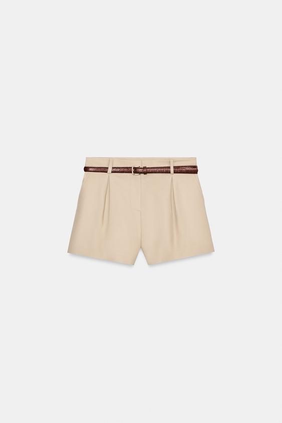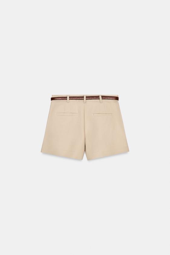 ZARA ШОРТЫ-БЕРМУДЫ С ВЫСОКОЙ ПОСАДКОЙ И РЕМНЕМ, СВЕТЛЫЙ ЖЕЛТО-КОРИЧНЕВЫЙ
